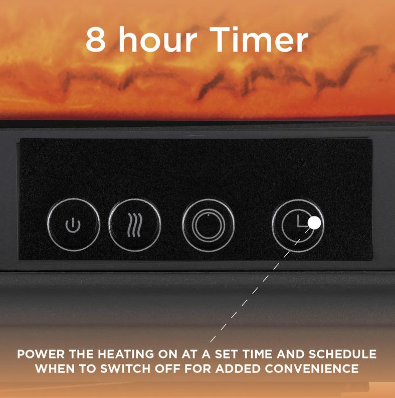 The Electric Double Door Fireplace Heater replicates the look and feel of a warm fire to turn a dark, cold night into a cosy evening lounging in your living room. Its elegant cast iron finish is coupled with a realistic log flame effect to create an authentic, relaxing atmosphere in your home. Open the large panoramic window display to easily control settings, with the ability to dim the LED flame effect to set the ideal mood. It features a choice of two heat settings to warm up your room in a matter of minutes, with an 8 hour timer function to pre-set the heater to power on or shut off at a time that suits. A remote control is included to conveniently adjust settings from the comfort of your sofa. The Electric Double Door Fireplace Heater offers a stylish heating solution without sacrificing ambience.