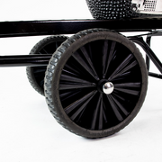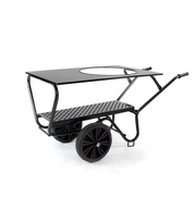The transporter is made of powder-coated steel which not only provides a tough look but also protects against all weather conditions. The hole in the top is large enough for the LARGE Kamado. With the handy middle shelf, you can also carry other products, such as charcoal. Thanks to the hard tyres, the transporter can be used on any terrain, so you don't have to worry about flat tyres.