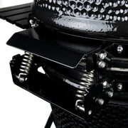The MEDIUM YAKINIKU Kamado Black Edition comes with a wide range of convenient features that enhance your cooking experience. For example, this model has an airtight entrance in the dome. This opening allows you to add smoking wood during your grilling session through the Woodchipper without losing heat. The MEDIUM Kamado comes without a woodchipper, so while there is a woodchipper opening in the Kamado, you will need to purchase the Woodchipper separately. The integrated hinge mechanism allows you to effortlessly open and close the lid, giving you easy access to your dishes. The precise air regulation provides optimal temperature control, while the integrated thermometer helps you achieve the perfect doneness of your dishes.