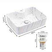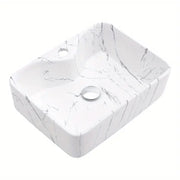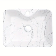 Introducing the Nordic White Rectangle Ceramic Countertop Basin, a luxurious and modern addition to any bathroom. This stylish wash basin features a stunning marble-effect finish, offering both elegance and functionality for your home, hotel, or balcony bathroom. Designed with a single, spacious basin, it is perfect for those seeking a sleek and minimalist aesthetic. The high-quality ceramic construction ensures durability and easy maintenance, making it ideal for both residential and commercial spaces.
