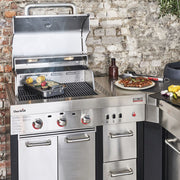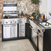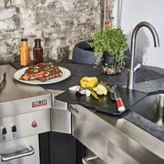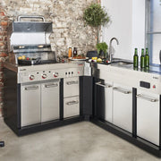 The module is equipped with a fully functioning sink, an integrated plastic cutting board, a removable ice box, a retractable waste container and an recessed double socket. You can flexibly combine the Ultimate Entertainment Module with the Ultimate 3200 gas grill - for a perfect outdoor kitchen. If you also add the Ultimate Corner Module, you can place your Ultimate kitchen around the corner and create additional storage space.