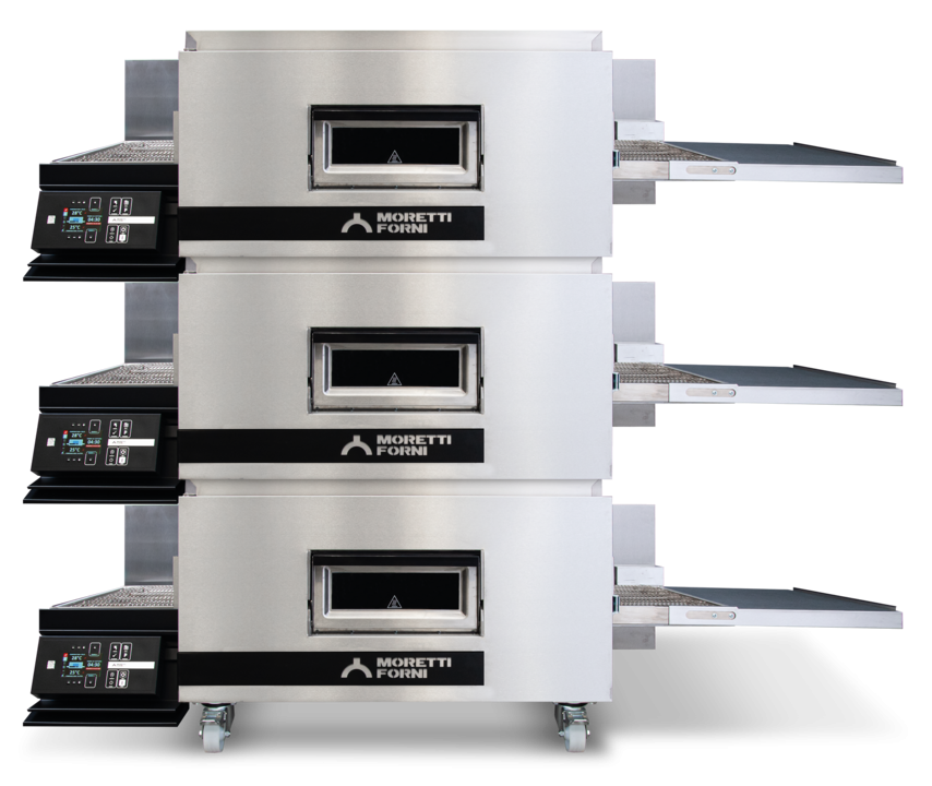 This Moretti Forni T98E Compact electric conveyor oven, uses the latest "Impinger Inverter hot air" technology allowing high speed cooking and even heat distribution making them ideal for cooking other products, not just pizzas, such as Chicken portions, flatbreads, hamburgers, garlic bread etc