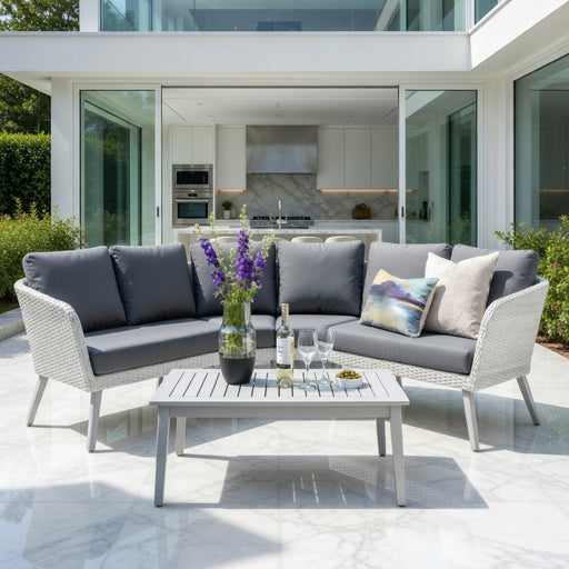 Description The incredibly stylish Kimora Corner Lounge Set Grey is a stunning statement piece for your garden or patio space. Crafted from ...