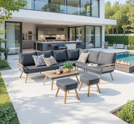 Introducing the Billingford 5pcs Large Corner Set - an elegant and adaptable outdoor furniture ensemble.The powder-coated Anthracite aluminum frame...
