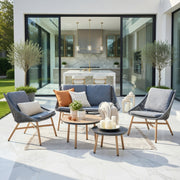 - Wood Look Aluminium Frame with Black Wicker