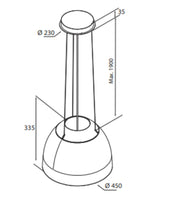Airforce New Moon 45cm Island Cooker Hood in Complete Black Satin Finish with Slim LED Lights