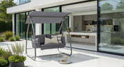 Experience the essence of summer with the Newmarket 2 Seater Swing! This inviting swing offers the perfect retreat to bask in the sunshine alongside your favourite person. Sink into luxurious comfort with its plush Grey Polyester cushions, providing a sensation akin to lounging on a cloud. The sleek, contemporary design features a robust powder-coated grey steel frame, meticulously welded for durability and modern sophistication, elevating any outdoor setting. For those scorching summer days, the adjustable canopy offers just the right amount of shade, ensuring you remain cool and comfortable. Whether you’re engrossed in a book or sharing refreshing drinks with friends, the Newmarket 2 Seater Swing promises to be your go-to haven.