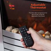 Create a warm and comfortable ambience in your living area with the adjustable temperature of this Chester fireplace suite. The remote control allows you to adjust between temperatures up to a 2000W setting, schedule the fireplace to operate over a 7 day, 24 hour period and set your preferred mood lighting brightness. The stainless steel fire inset features real coal with a realistic flame effect display to give the look and feel of a real fire, which can also be operated individually as a visual feature. The oak mantelpiece design creates a focal feature in your living area, with no assembly required so you can begin operation at your earliest convenience. The safety cut out feature ensures safe operation during use.